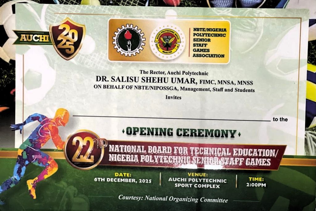 You are specially invited as Auchi Polytechnic hosts this year’s Nigeria Polytechnic Senior Staff Games (NIPOSSGA), commissioned by the National Board for Technical Education (NBTE).
